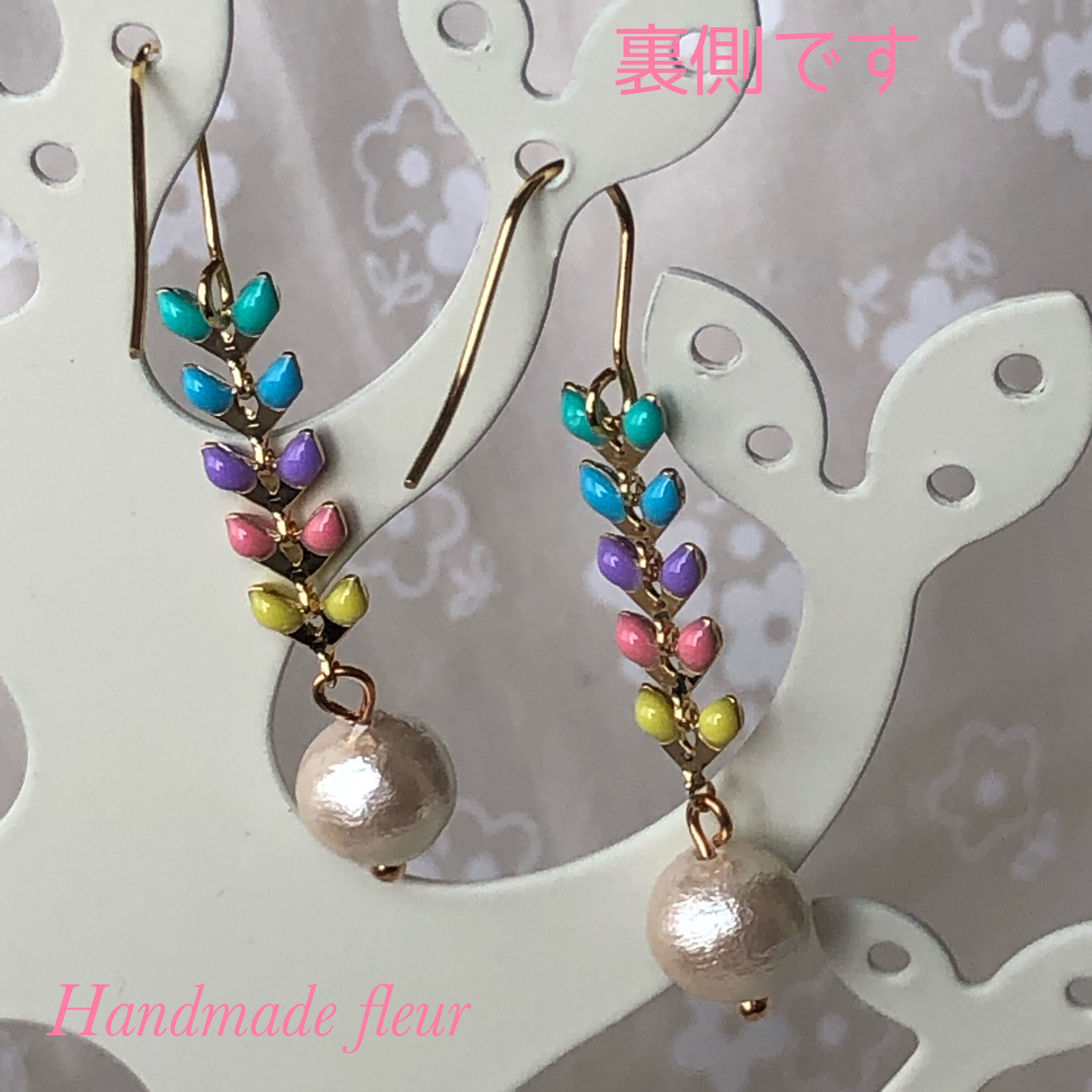 5色で彩るカラーチェーンで、コットンパールを飾りました。