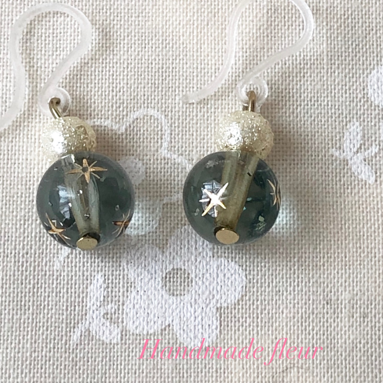 ブルーに星模様のコスモビーズと、シュガーパールビーズで夏の星空をイメージして作りました。